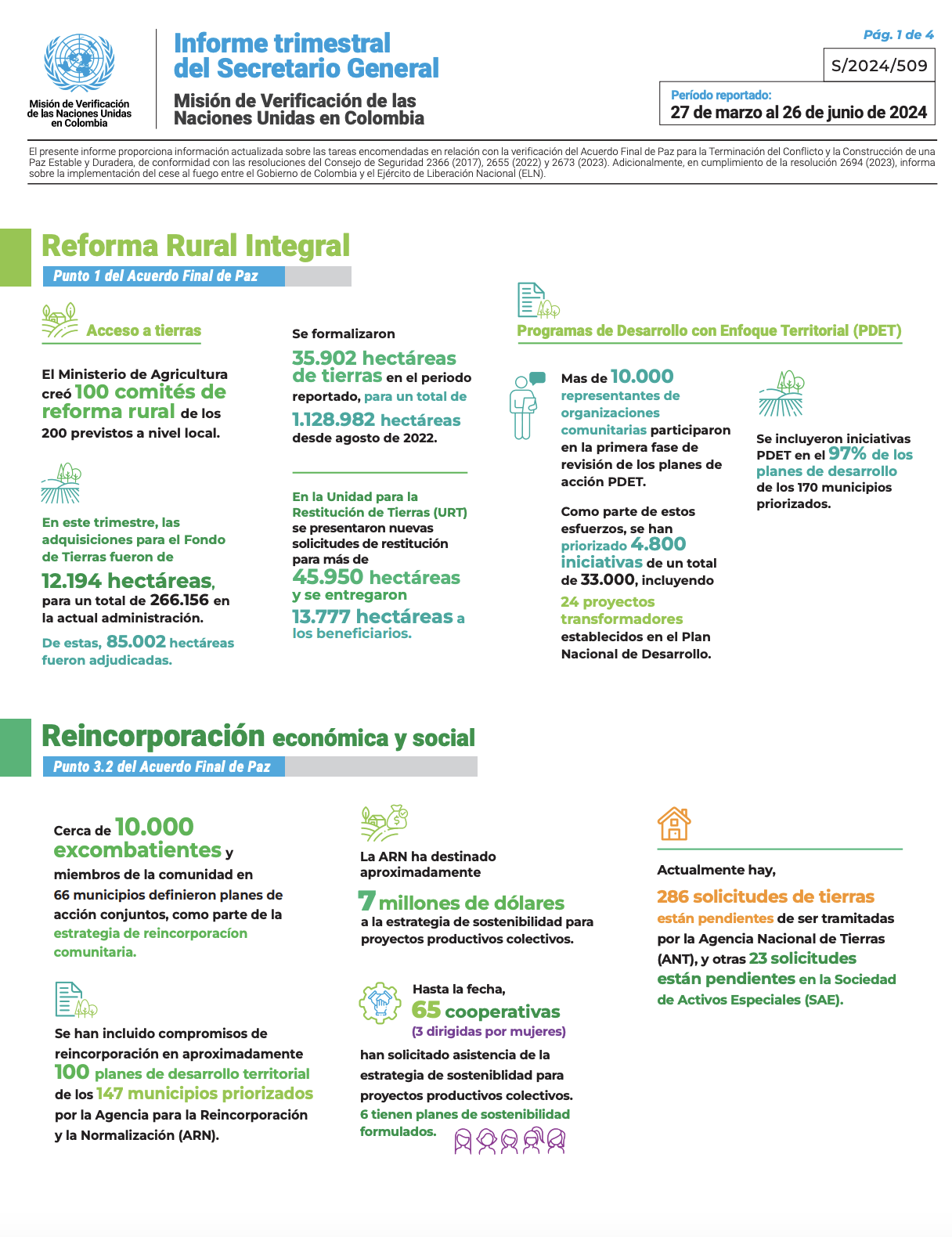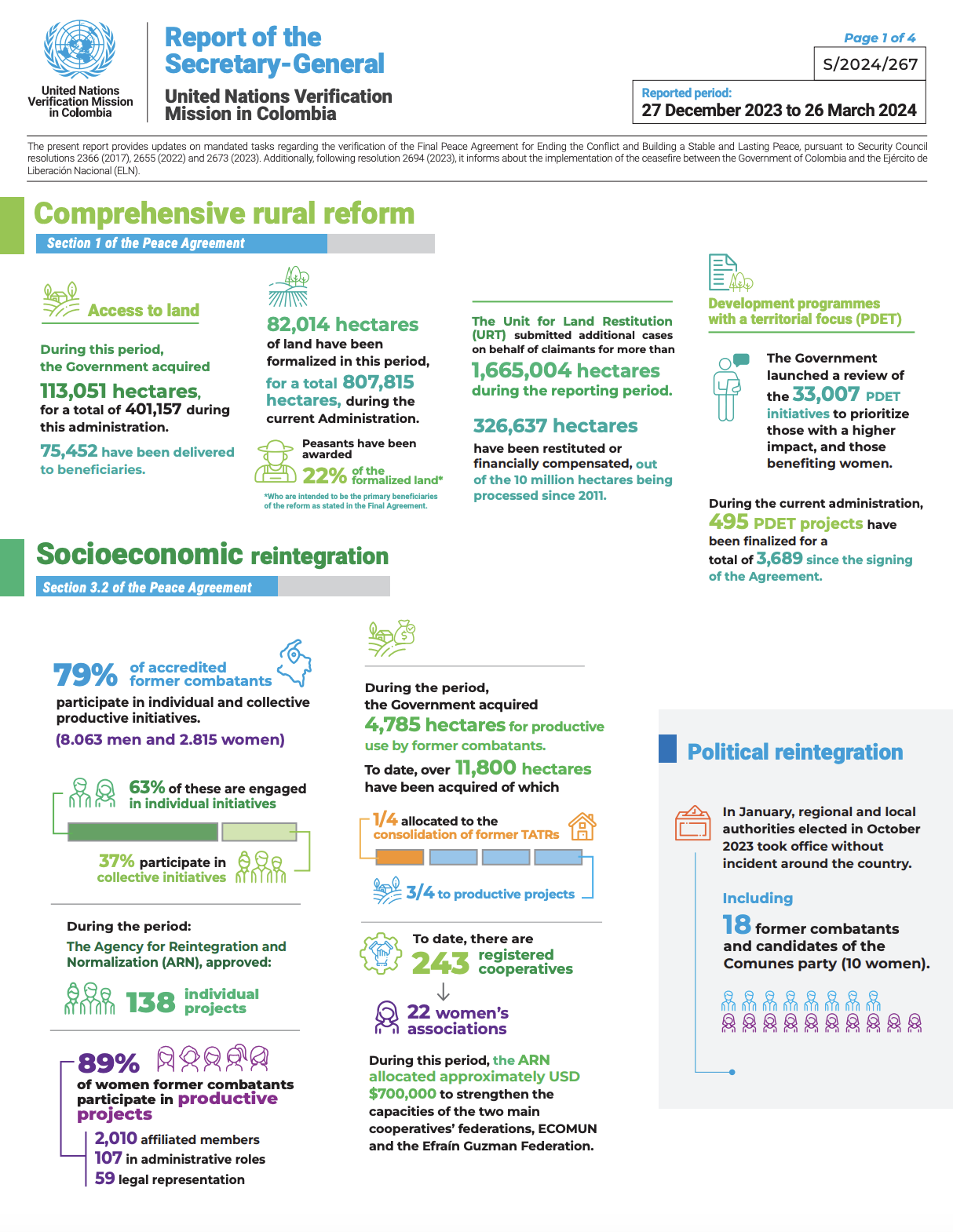 Download official photo Infográficos Infographic Report of the Secretary-General on the UN Verification Mission in Colombia. S/2024/267