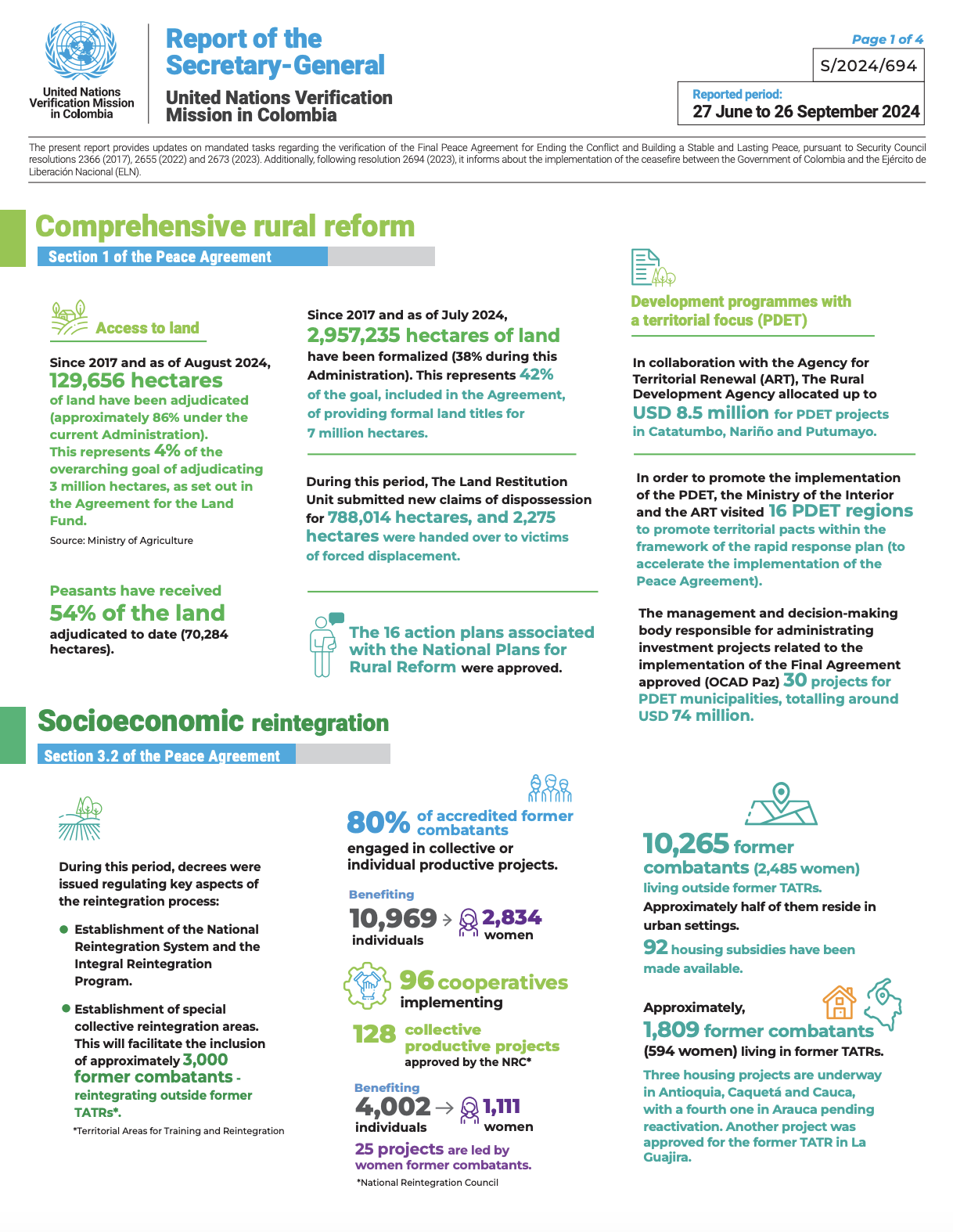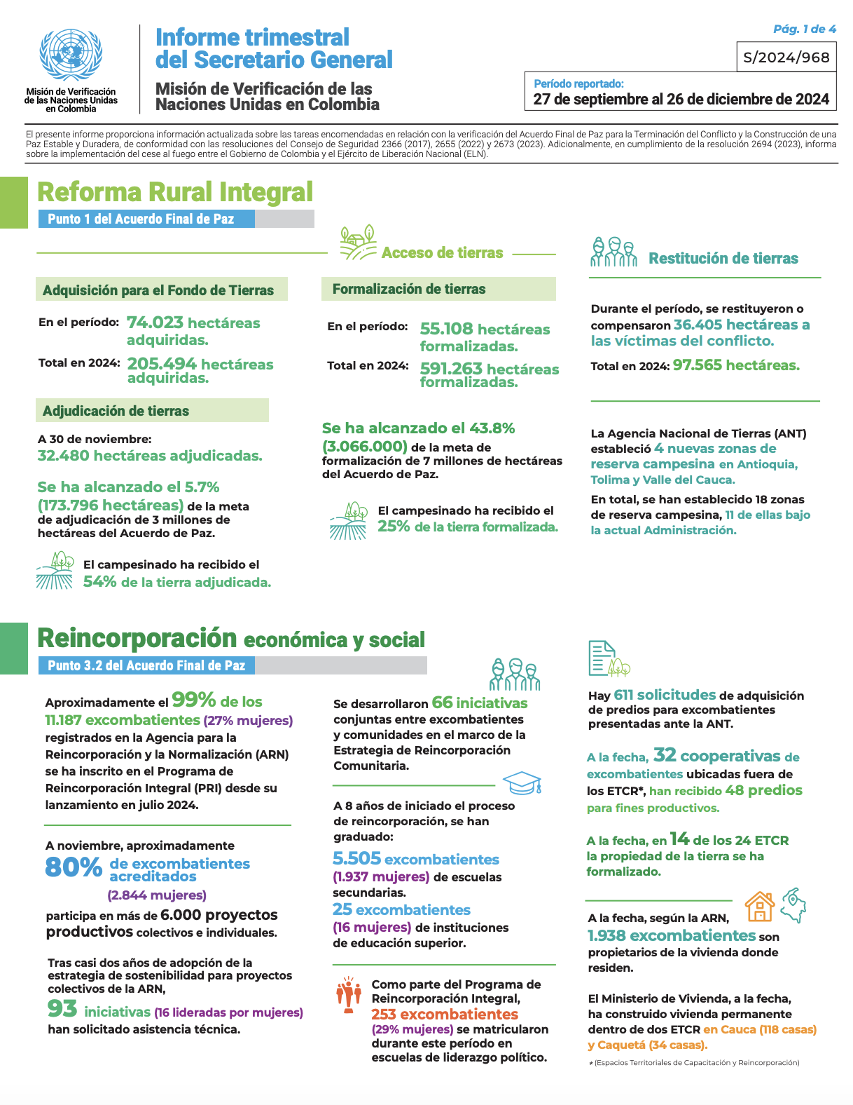 Download official photo Infográficos Infographic Report of the Secretary-General on the UN Verification Mission in Colombia. S/2024/694