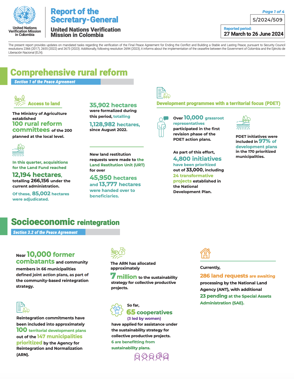 Download official photo Infográficos Infographic Report of the Secretary-General on the UN Verification Mission in Colombia. S/2024/509