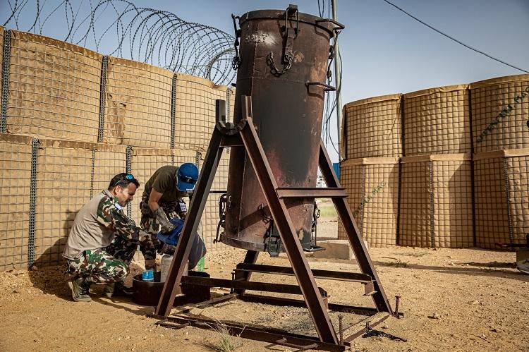 Pour y faire face, le Service de lutte anti-mines des Nations unies, (UNMAS) en collaboration avec le contingent népalais, à Kidal, a lancé depuis le 8 septembre la destruction des munitions de petit calibre selon un protocole rigoureux. Après un tri détaillé, les munitions sont regroupées par catégories et soumises à un processus d’incinération. Un mécanisme ingénieux de brûlage a été mis en place par cette équipe et garantit que chaque munition est totalement neutralisée en toute sécurité.