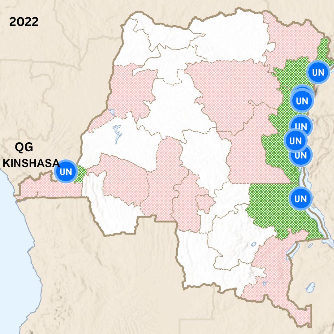 La Mission de l’ONU en RDC a apporté la paix et la stabilité dans plusieurs provinces du pays autrefois en proie à l’insécurité. Observez les cartes ci-dessous pour voir l’évolution au cours des cinq dernières années.