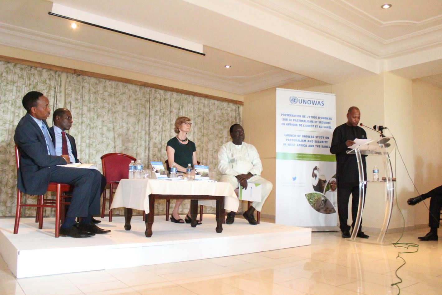 En présence du Représentant spécial du Secrétaire général et Chef du Bureau des Nations Unies pour l’Afrique de l’Ouest et le Sahel, M. Mohamed Ibn Chambas, les représentants de la FAO, de la Banque Mondiale, de l’USAID et de la CEDEAO ont prononcé un discours lors de la cérémonie de présentation, rappelant l’importance du Pastoralisme et de la sécurité dans la sous-région.